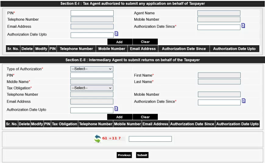 To complete this section, the taxpayer is required to input their business information into the designated text boxes.